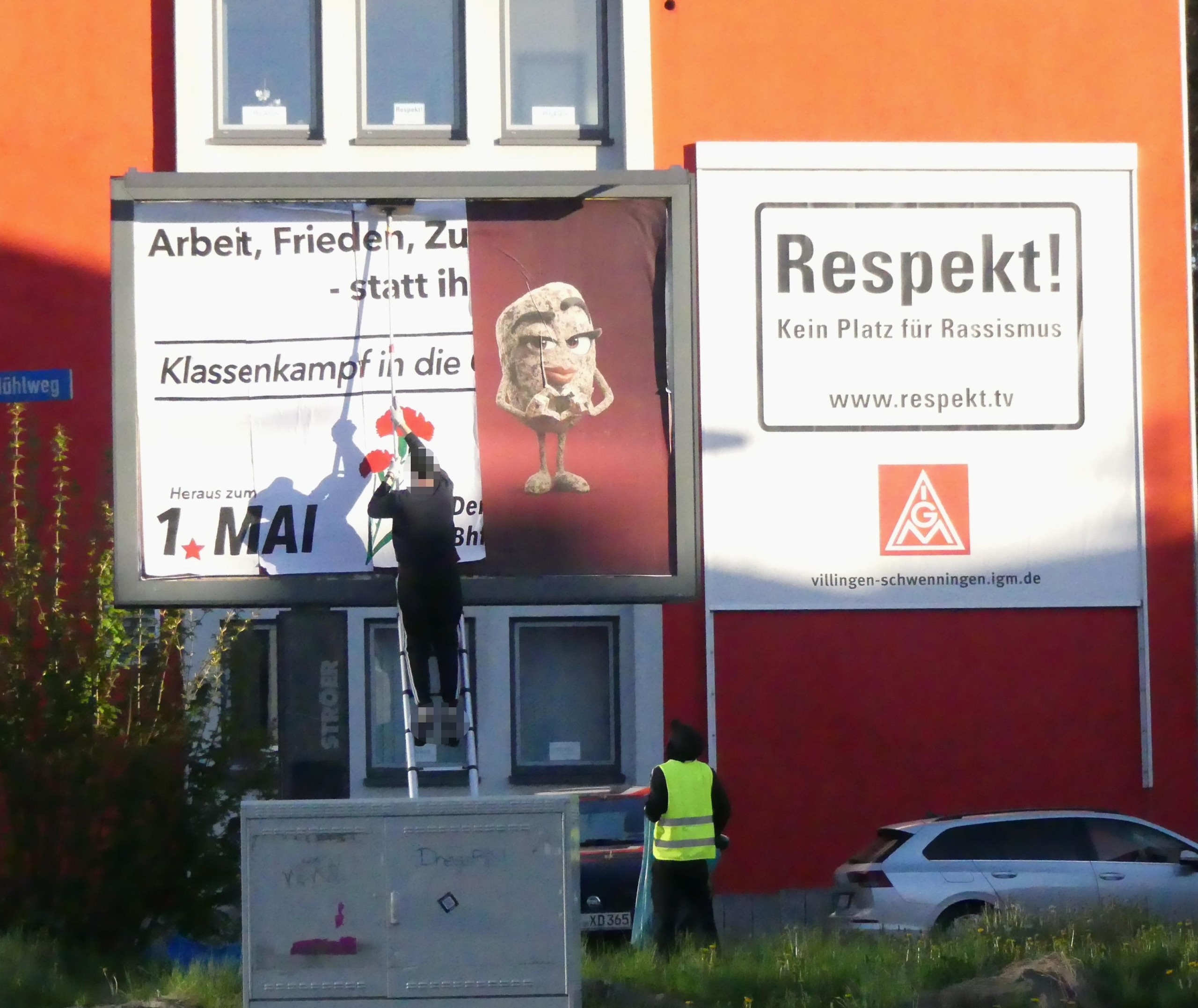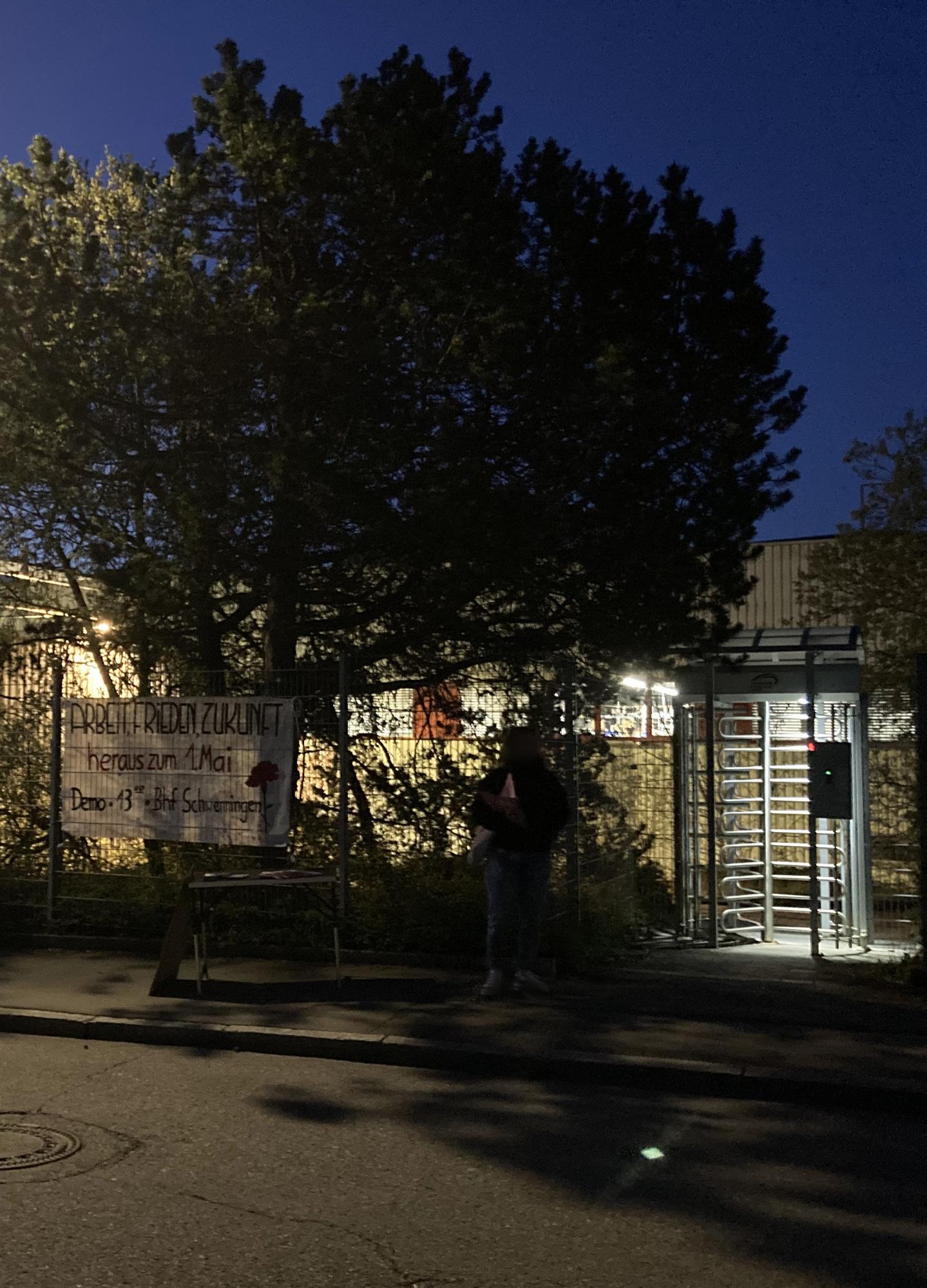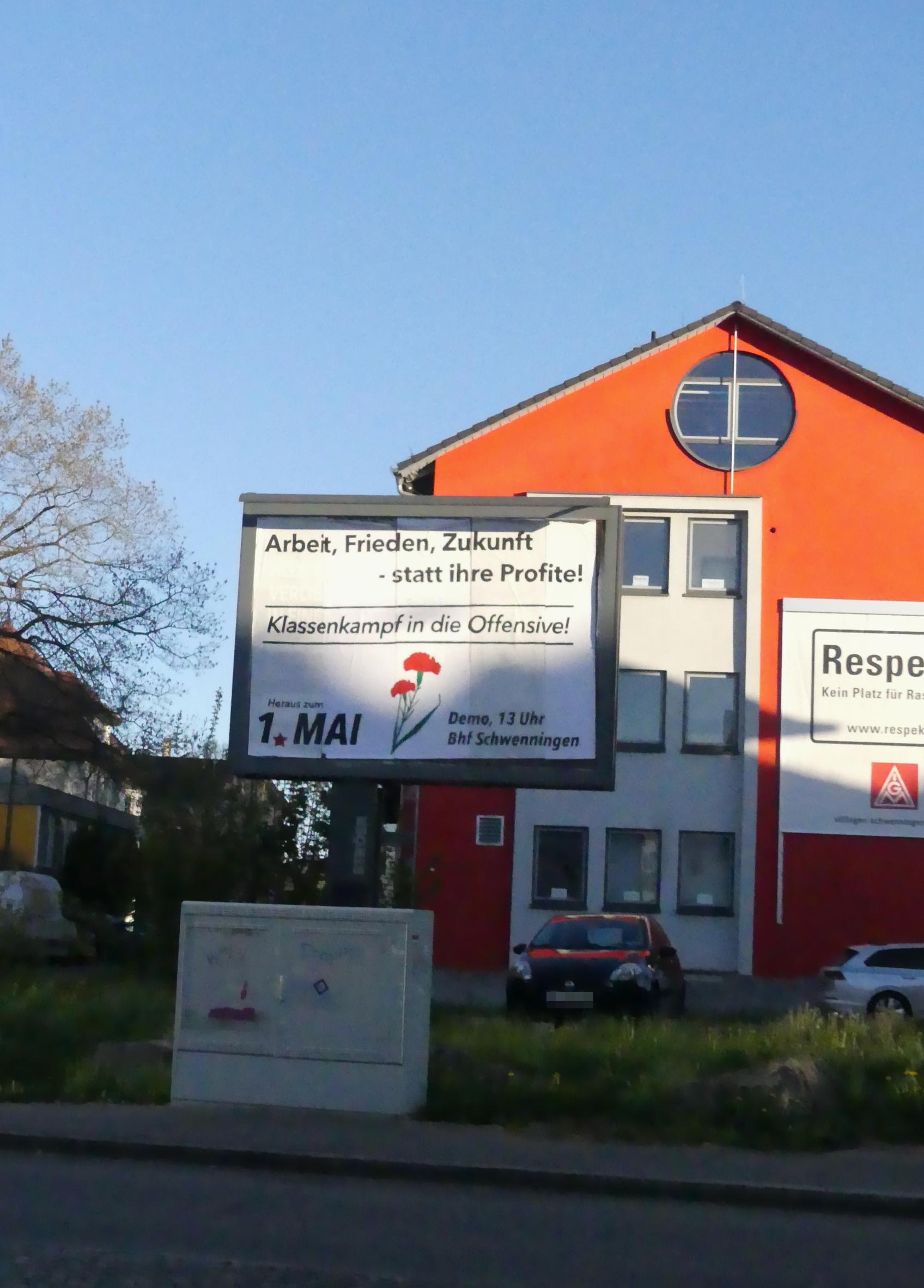 Die Mobilisierung zum 1.Mai und Demonstration in Schwenningen läuft. Plakate sind in den Straßen sichtbar, Mai Zeitungen werden an Betrieben verteilt und in verschiedenen Formen wird aufgegriffen wofür der 1.Mai steht: Gegen Faschismus, Krieg und Krise, für die internationale Solidarität, den revolutionären Bruch mit den herrschenden Verhältnissen und eine sozialistische Perspektive.